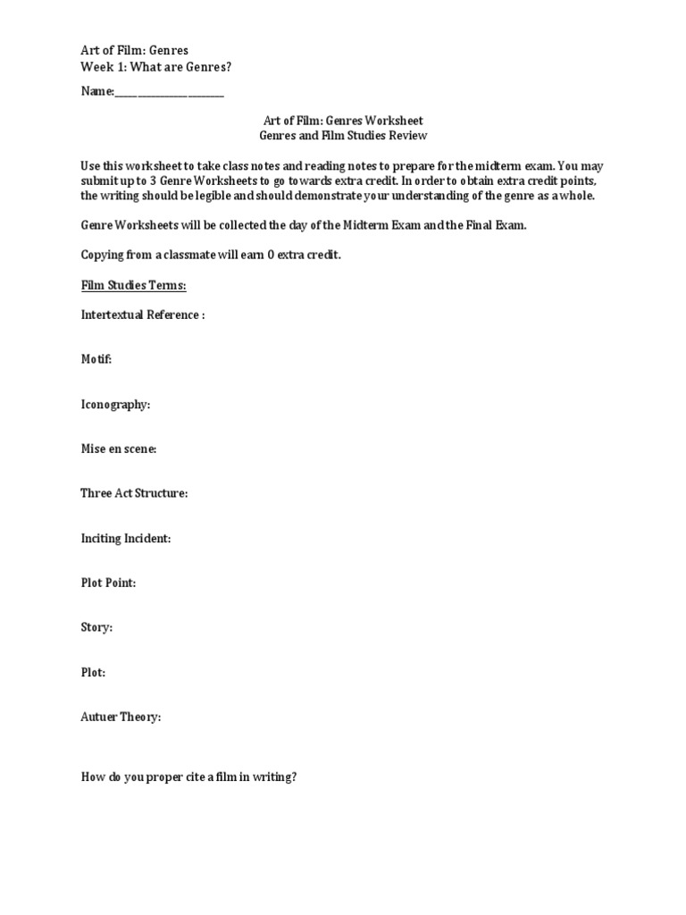 Genre Worksheet 1 PDF PDF Worksheets Library