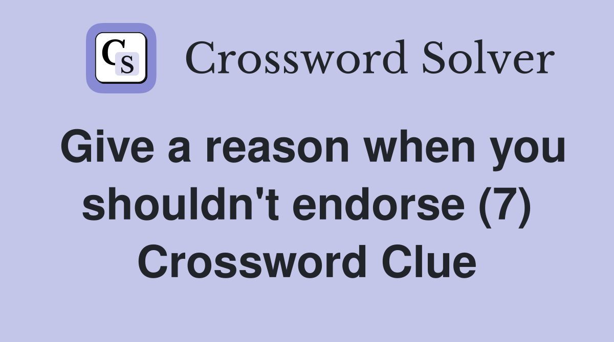 Give a reason when you shouldn #39 t endorse (7) Crossword Clue Answers
