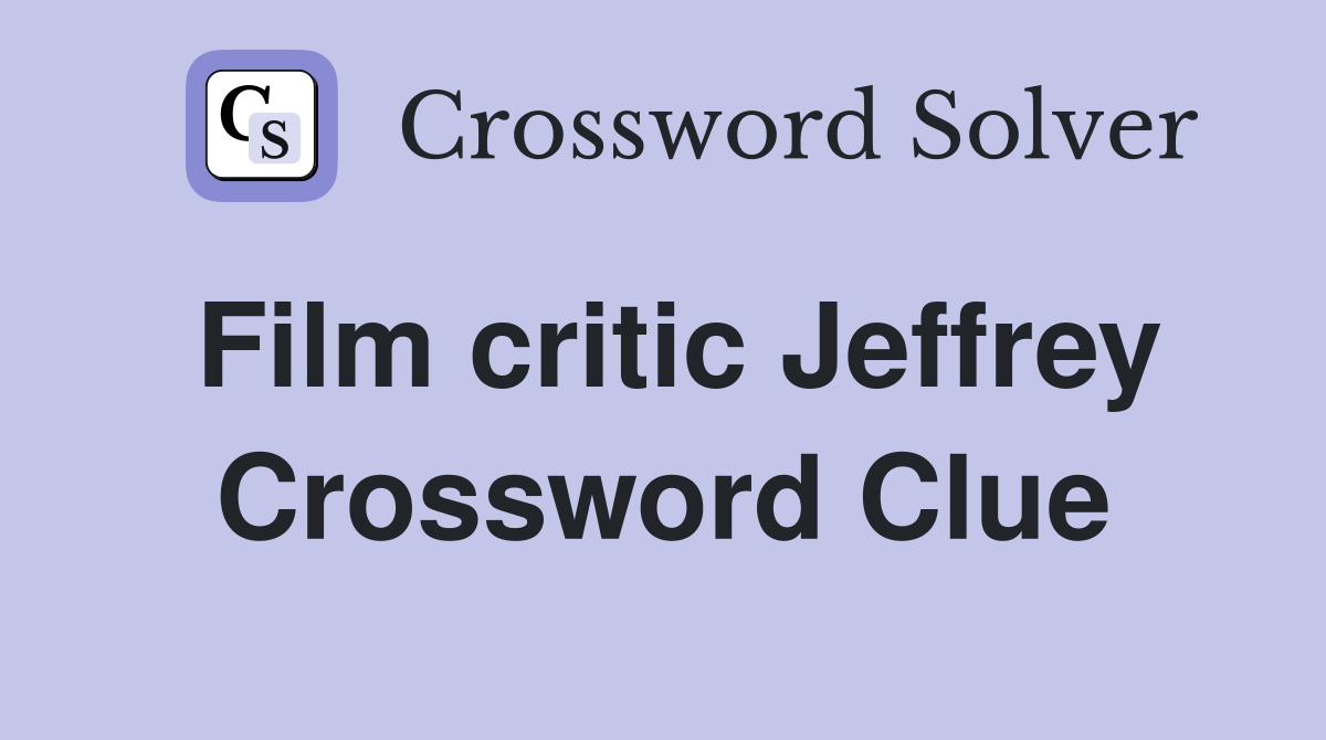 Film critic Jeffrey Crossword Clue Answers Crossword Solver
