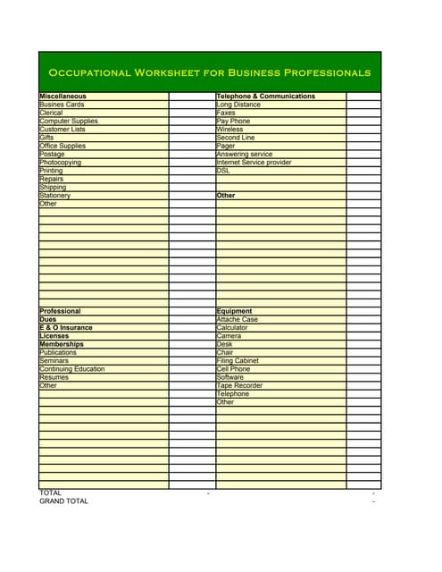 Fillable Online Self employment / Professional Business Worksheet Fax