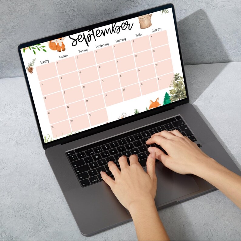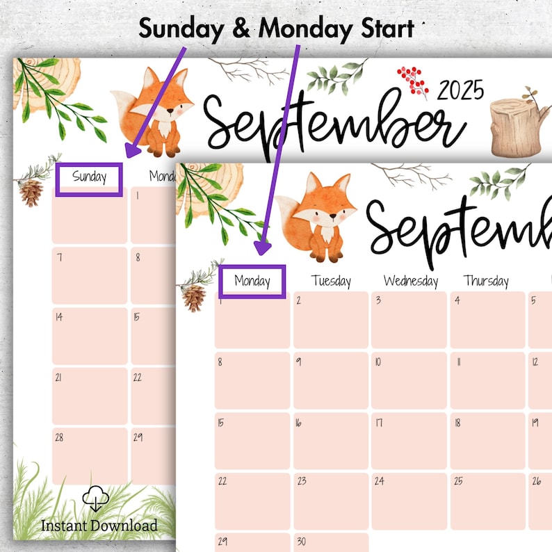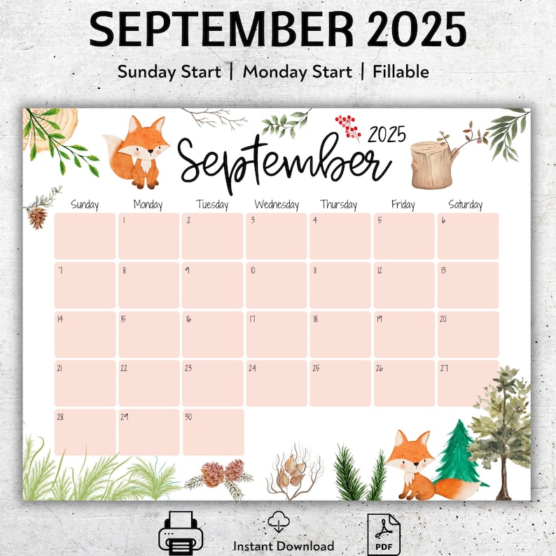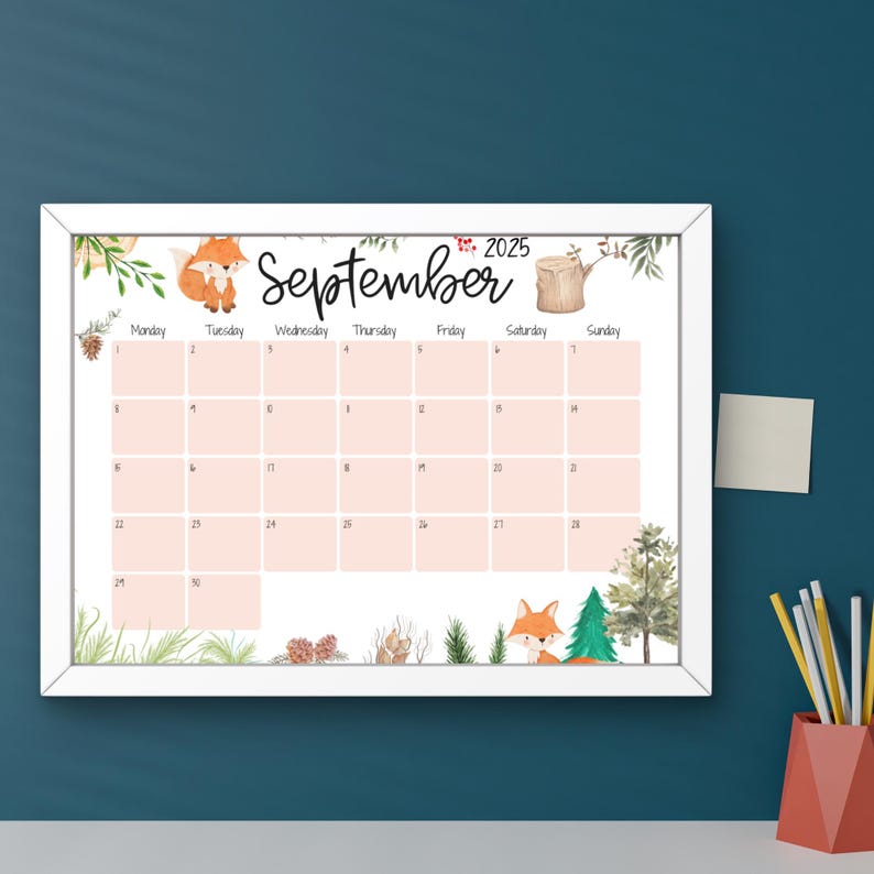 EDITABLE September 2025 Calendar Back to School Cute Fox Beautiful