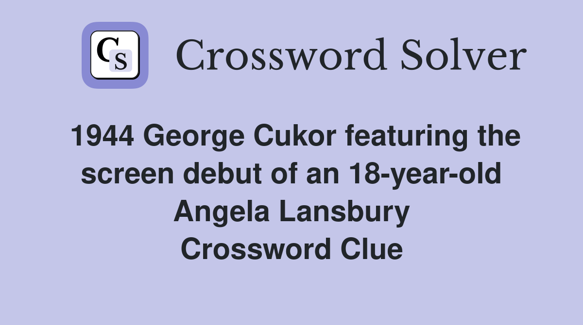 1944 George Cukor featuring the screen debut of an 18 year old Angela
