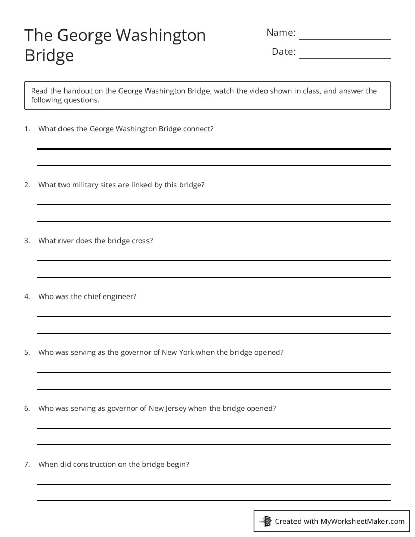 The George Washington Bridge My Worksheet Maker: Create Your Own