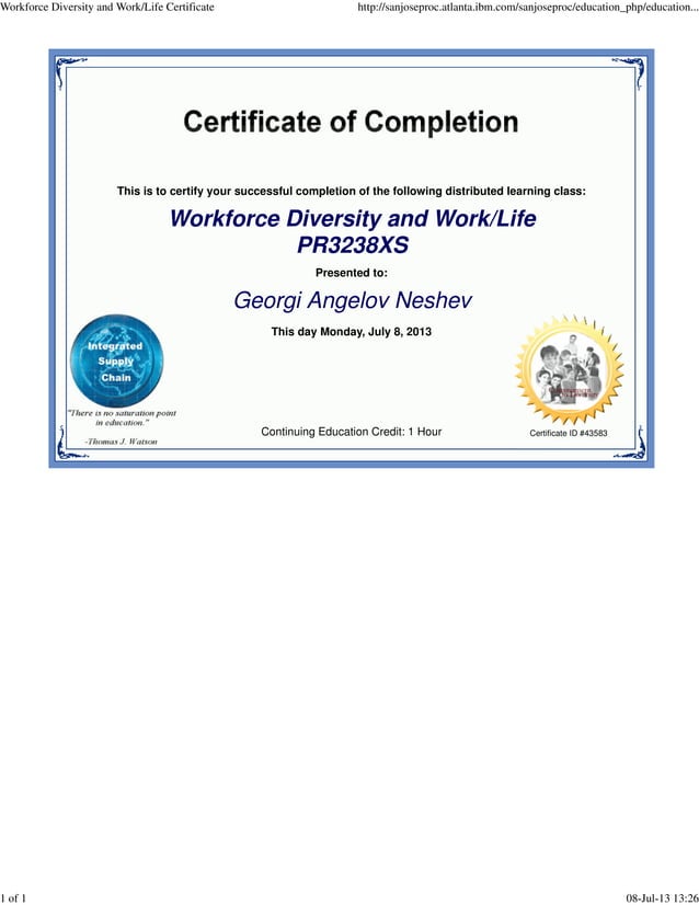 Workforce Diversity and Work Life Certificate PDF
