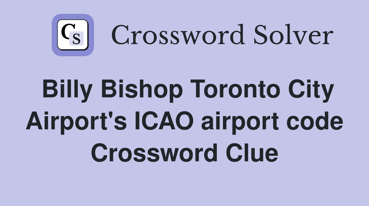 Billy Bishop Toronto City Airport s ICAO airport code Crossword Clue