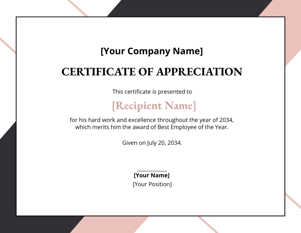 Appreciation Certificate for Employee Merit Template Edit Online
