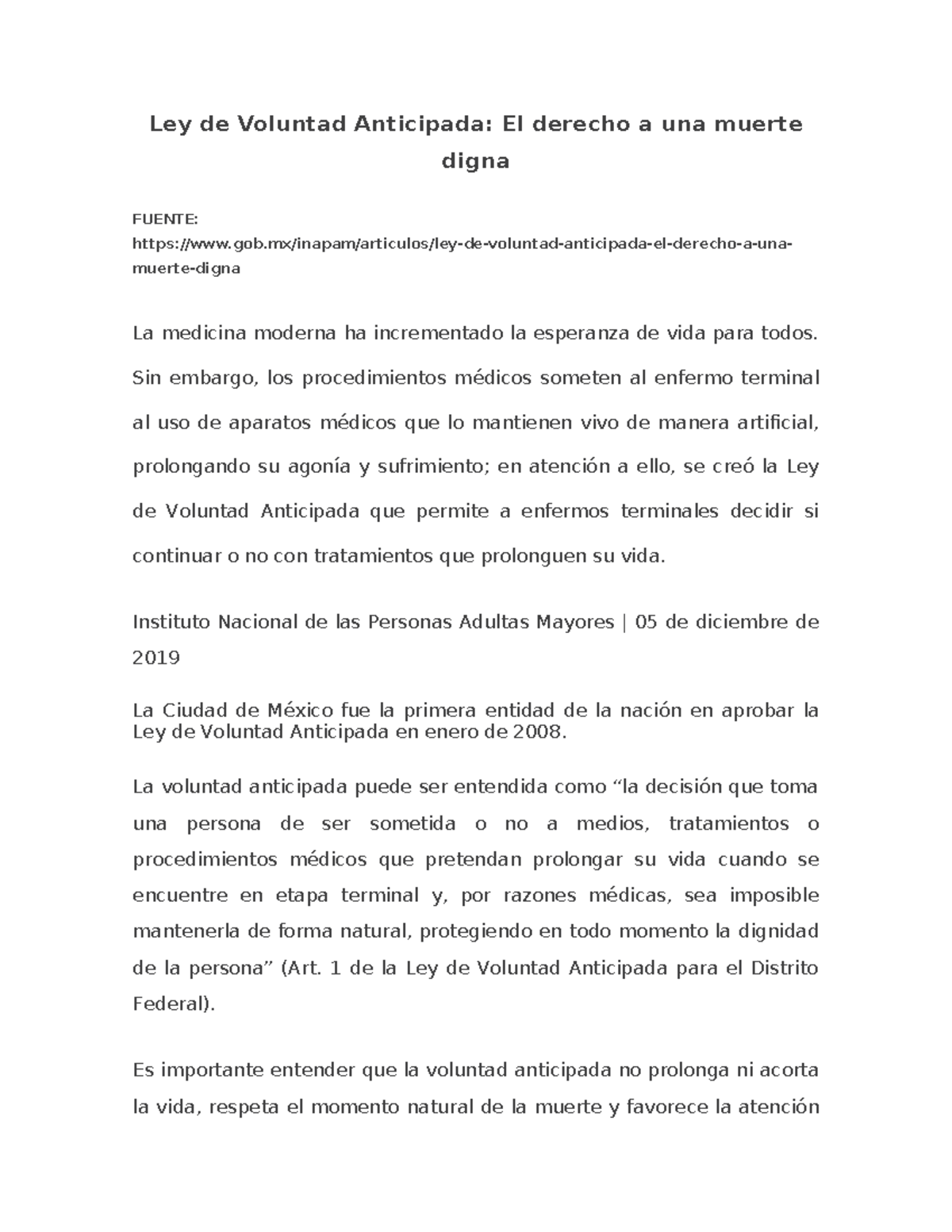 Ley de Voluntad Anticipada Sin embargo los procedimientos médicos