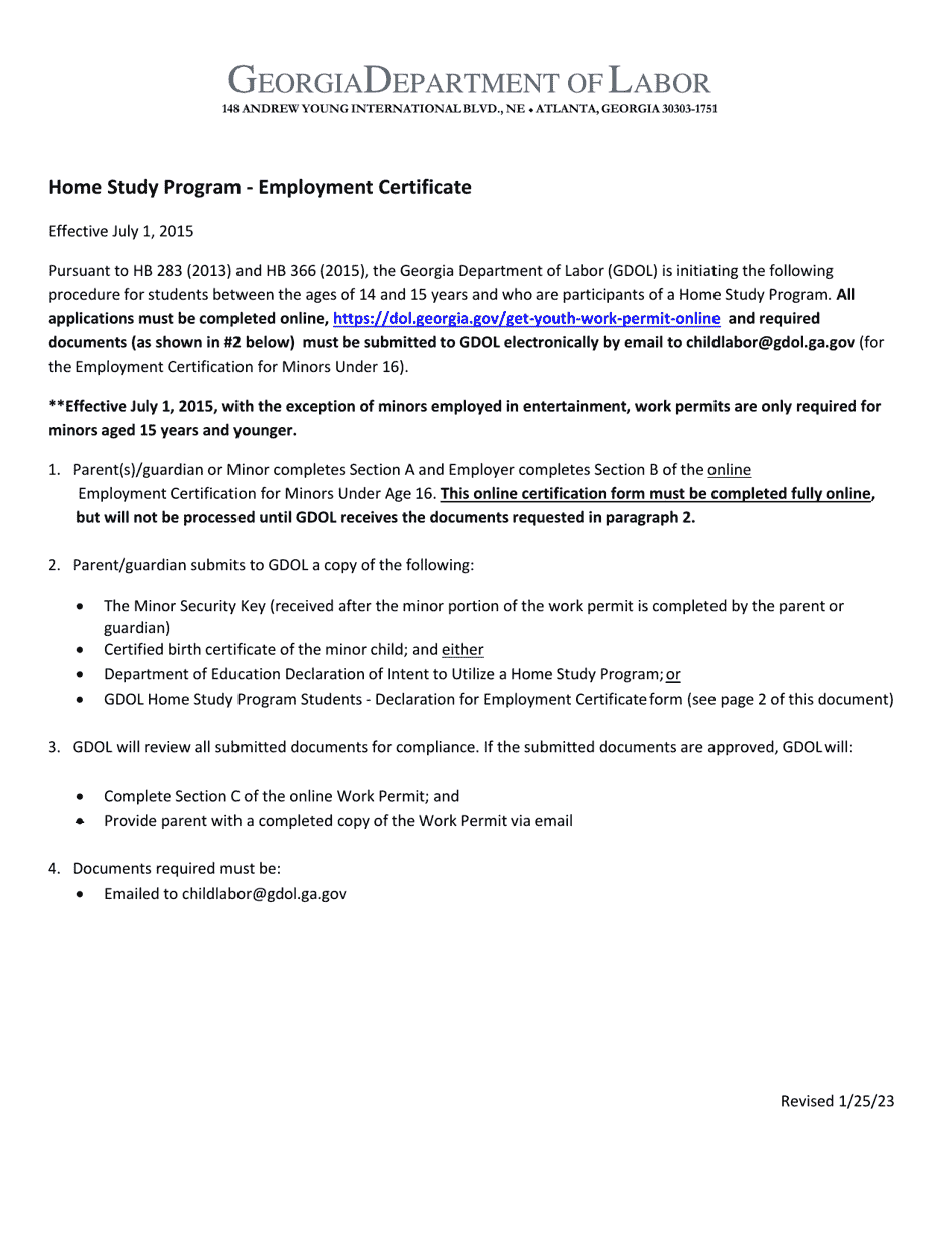Georgia (United States) Declaration for Employment Certificate Home