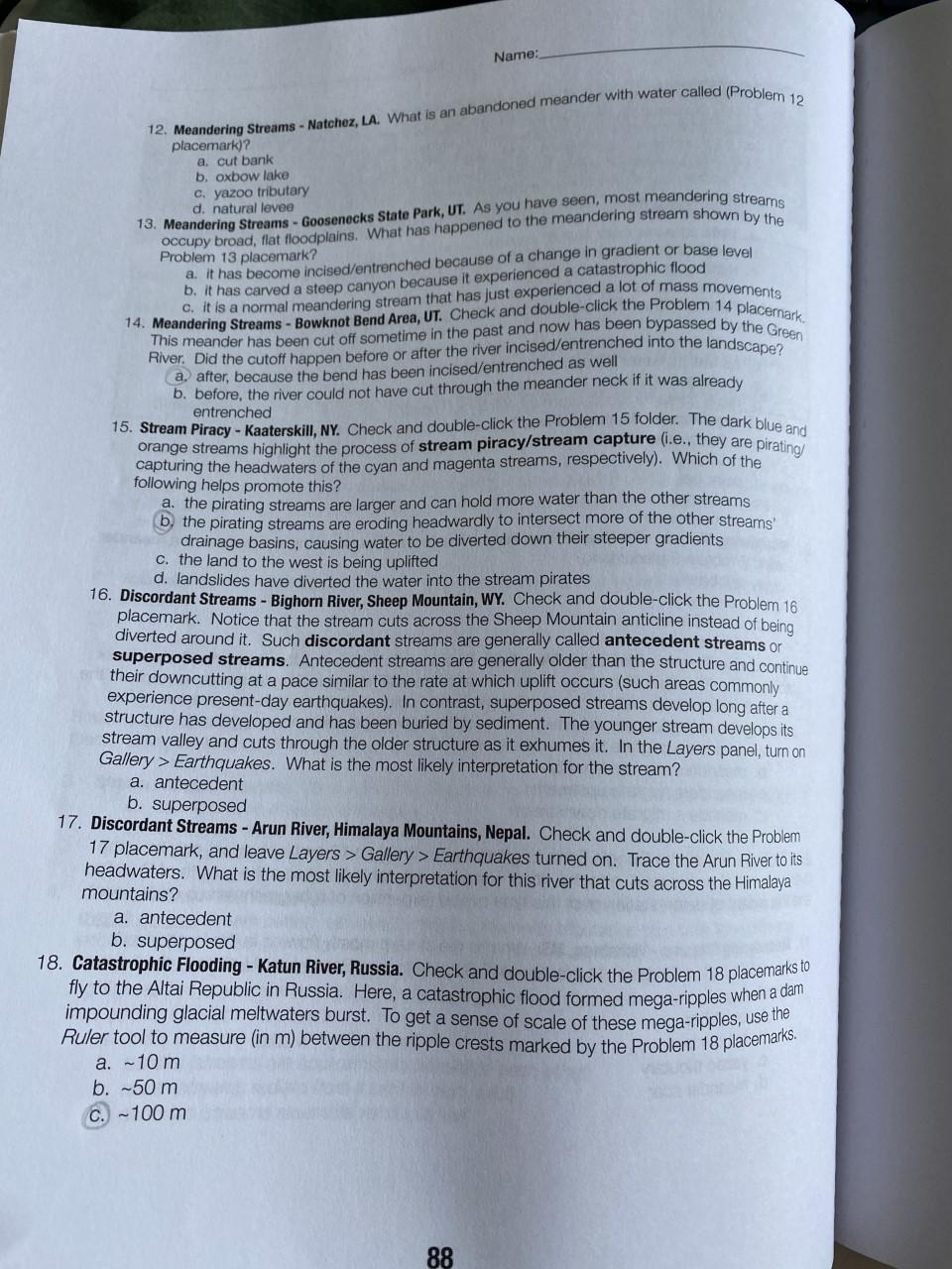 Solved Name: Geotour Worksheet N Stream Landscapes Circle Chegg com