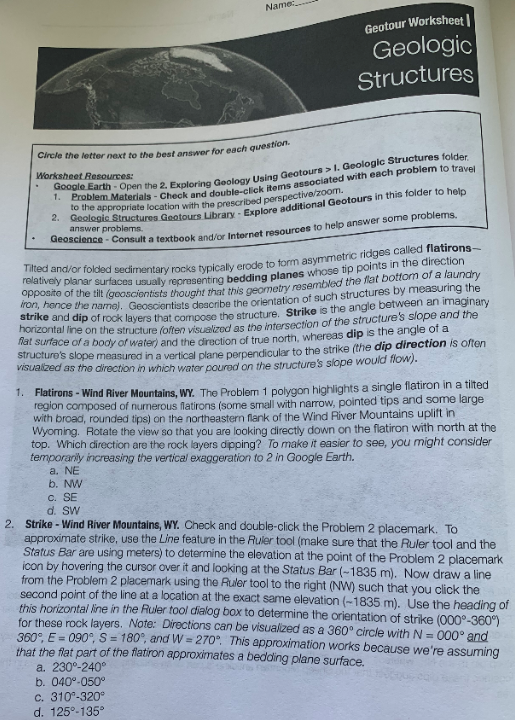 Geotour Worksheet Geologic Structures Circle the Chegg com
