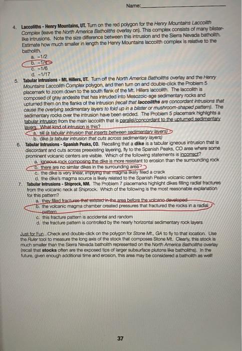 ESCI 120 Fall 2019 Pre Lab D igneous rocks pdf NAME: This exercise