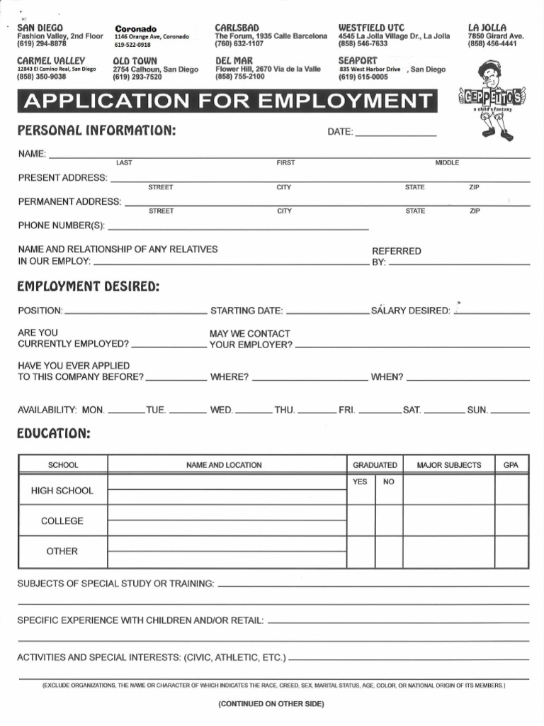 Geppettos Job Application Form 1 6 23 PDF Employee Relations