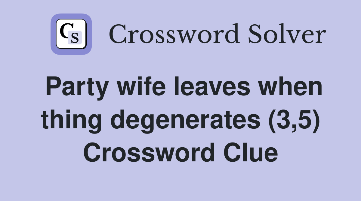 Party wife leaves when thing degenerates (3 5) Crossword Clue Answers