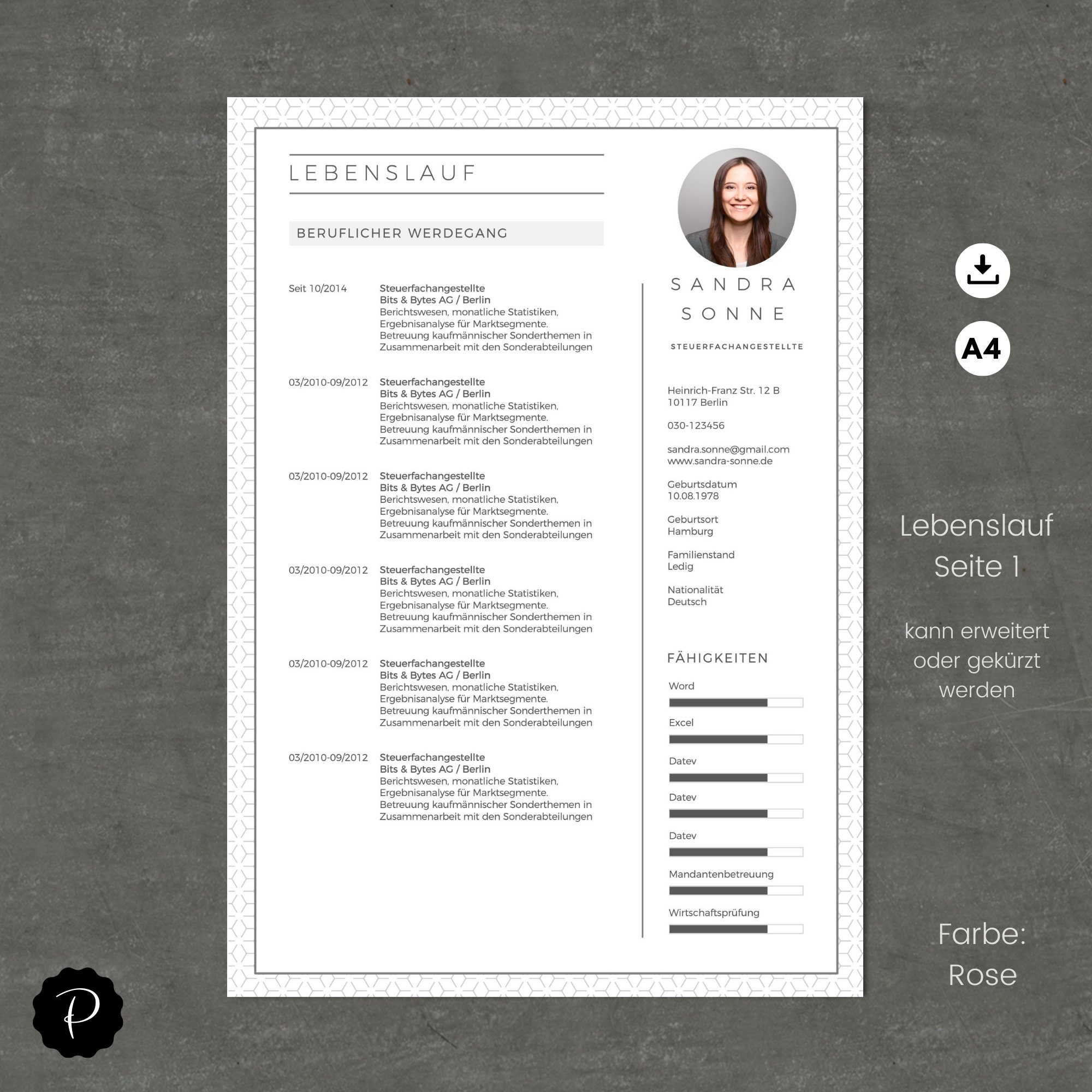 German CV examples : Download in word and PDF format