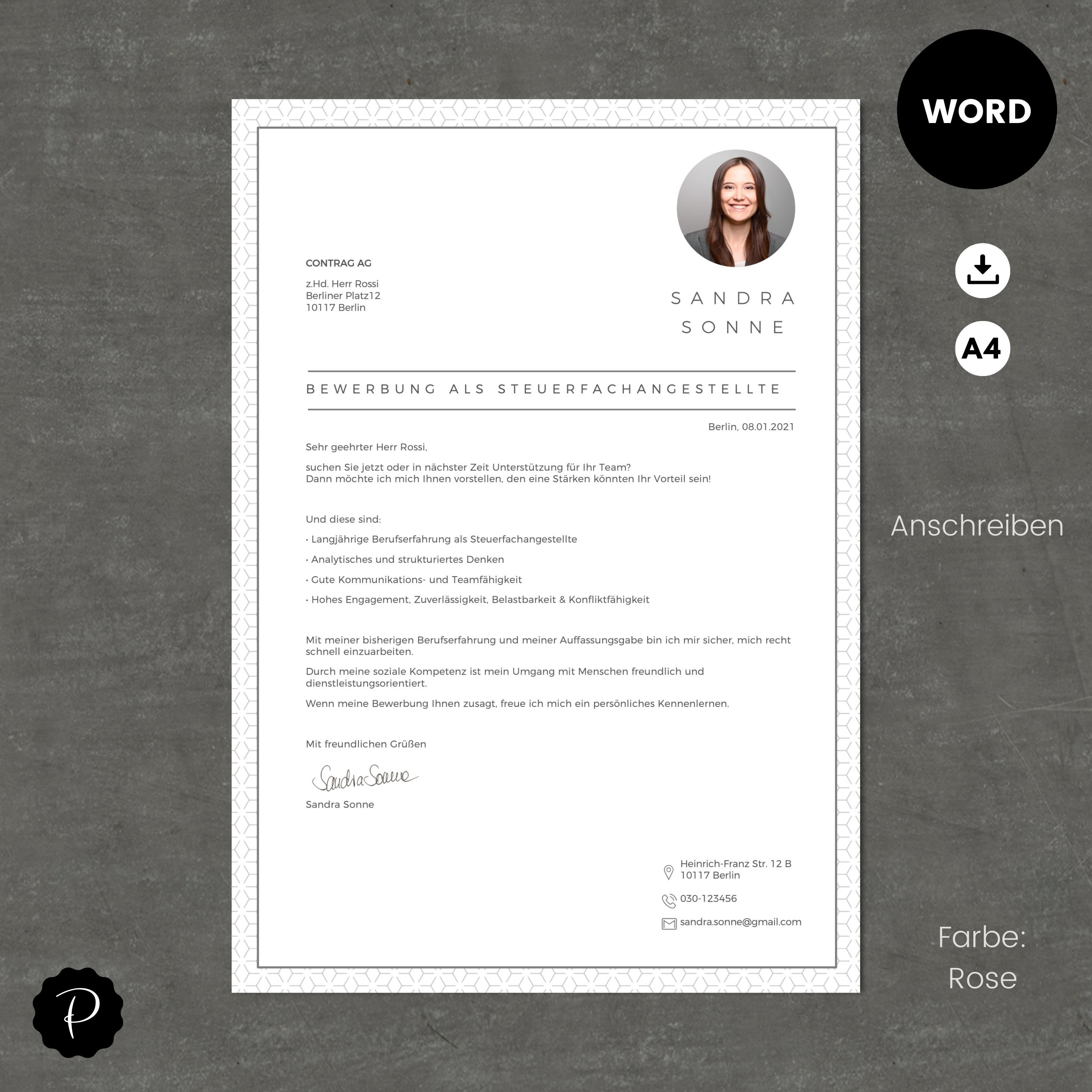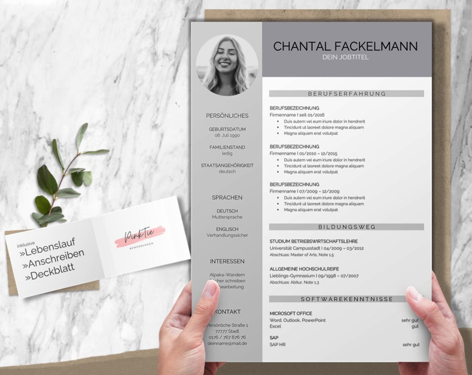 Application Template German With CV Template for Word and Pages Cover