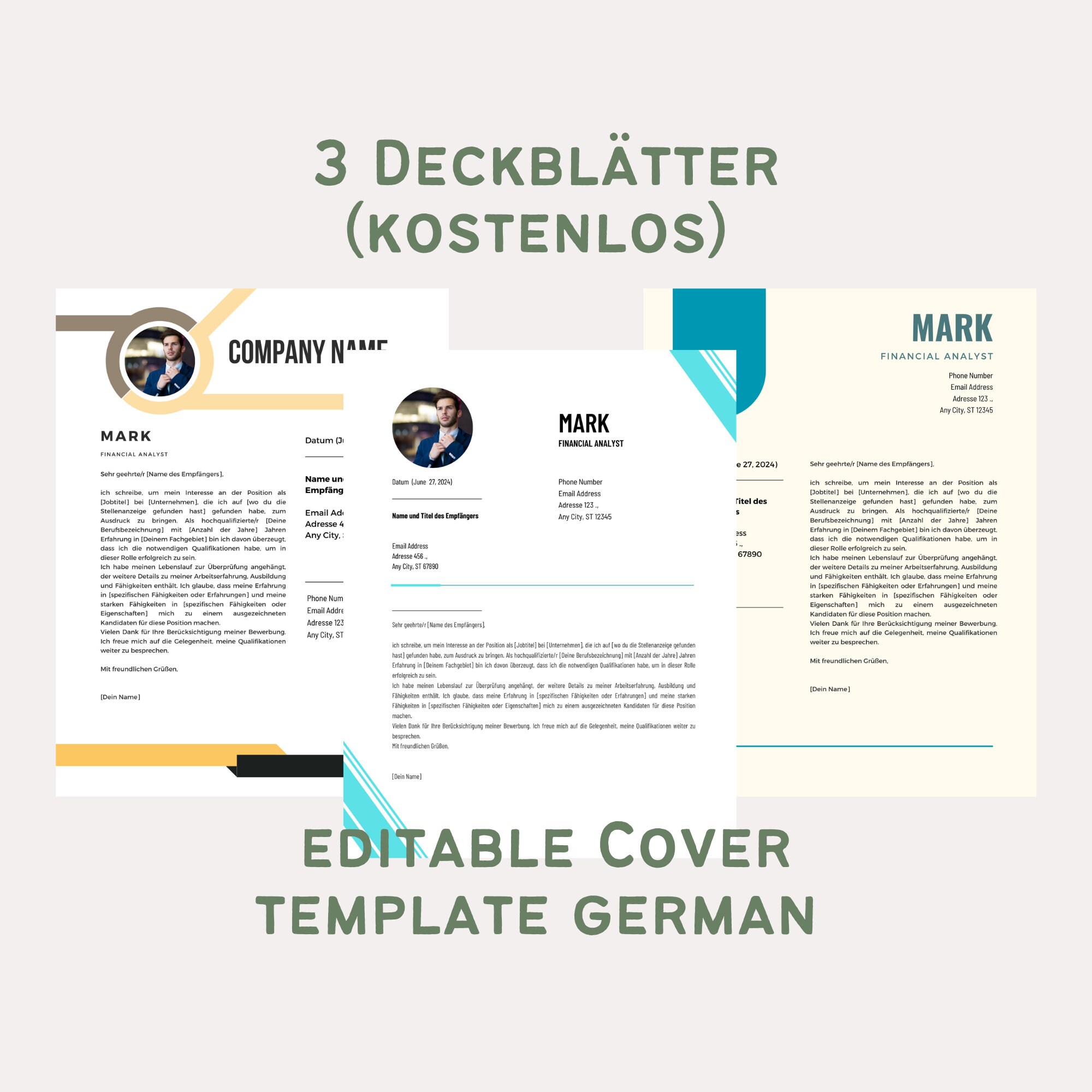 Application Template German: CV Template Cover Letter Cover Sheet