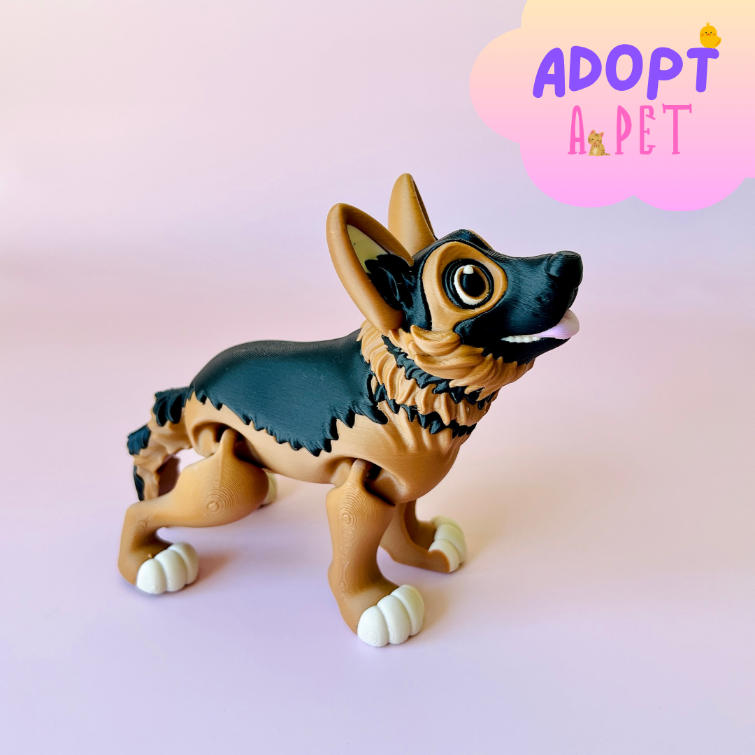 German Shepherd Dog 3D Printed Figurine with Adoption Certificate