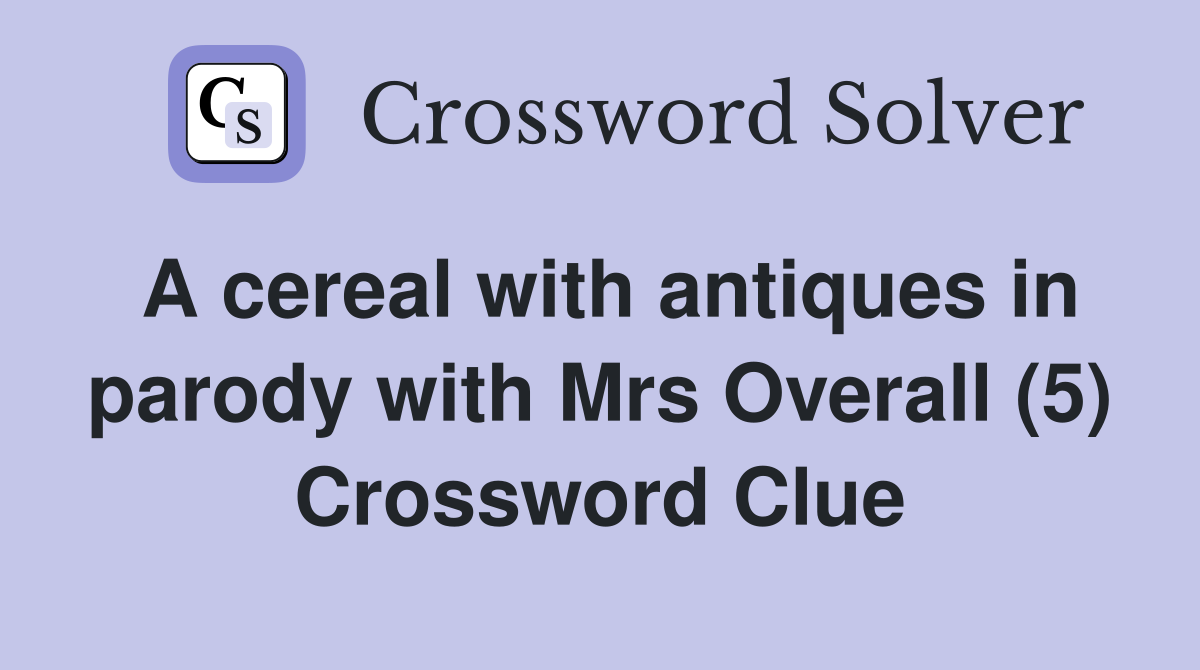A cereal with antiques in parody with Mrs Overall (5) Crossword Clue