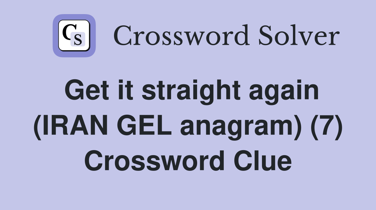 Get it straight again (IRAN GEL anagram) (7) Crossword Clue Answers