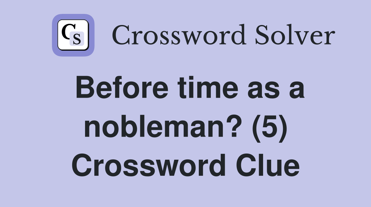 Before time as a nobleman? (5) Crossword Clue Answers Crossword Solver