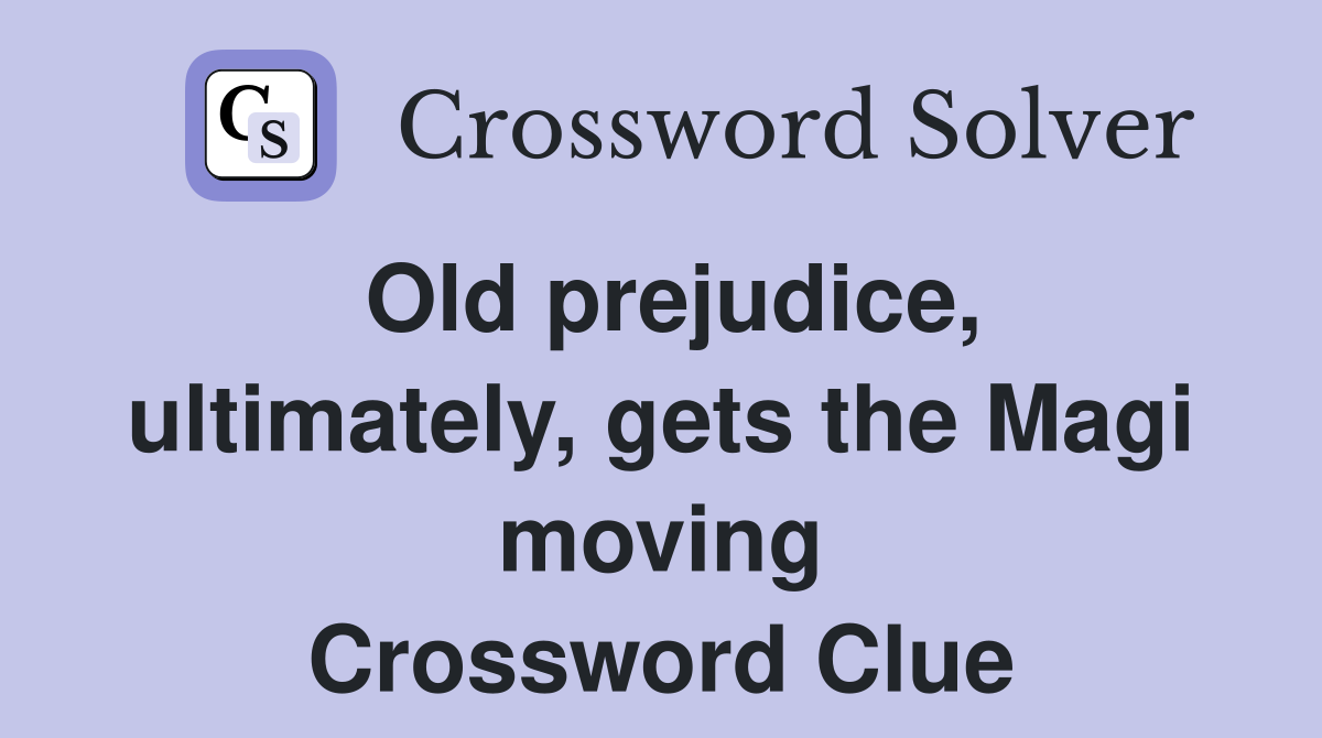 Old prejudice ultimately gets the Magi moving Crossword Clue