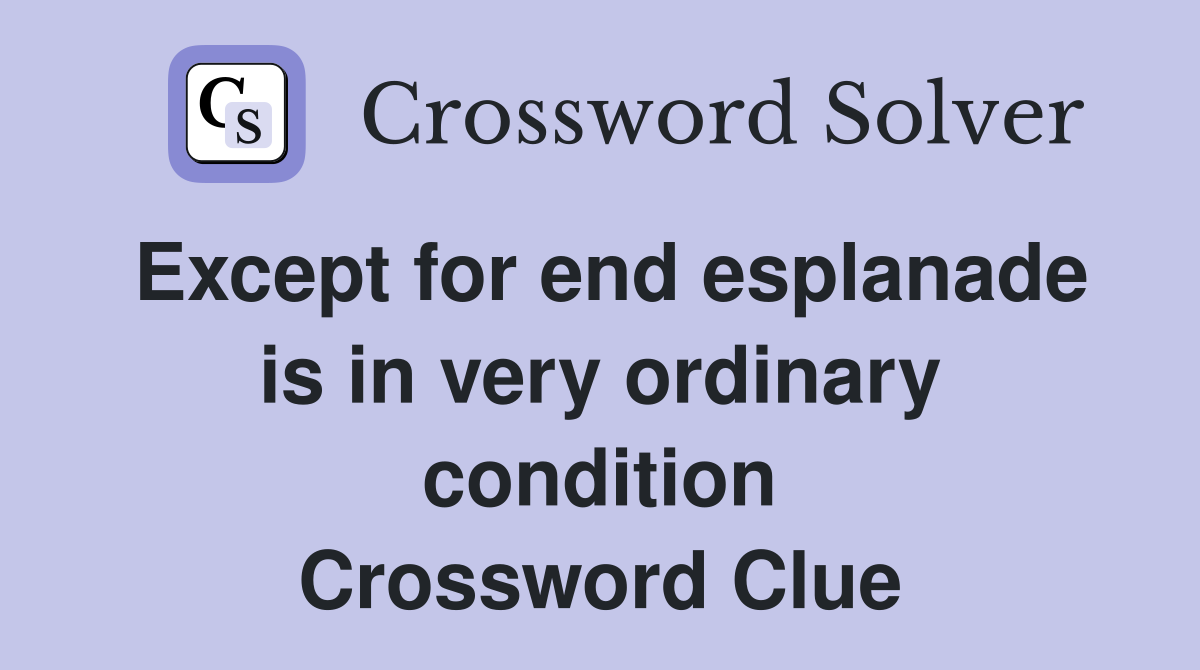 Except for end esplanade is in very ordinary condition Crossword Clue