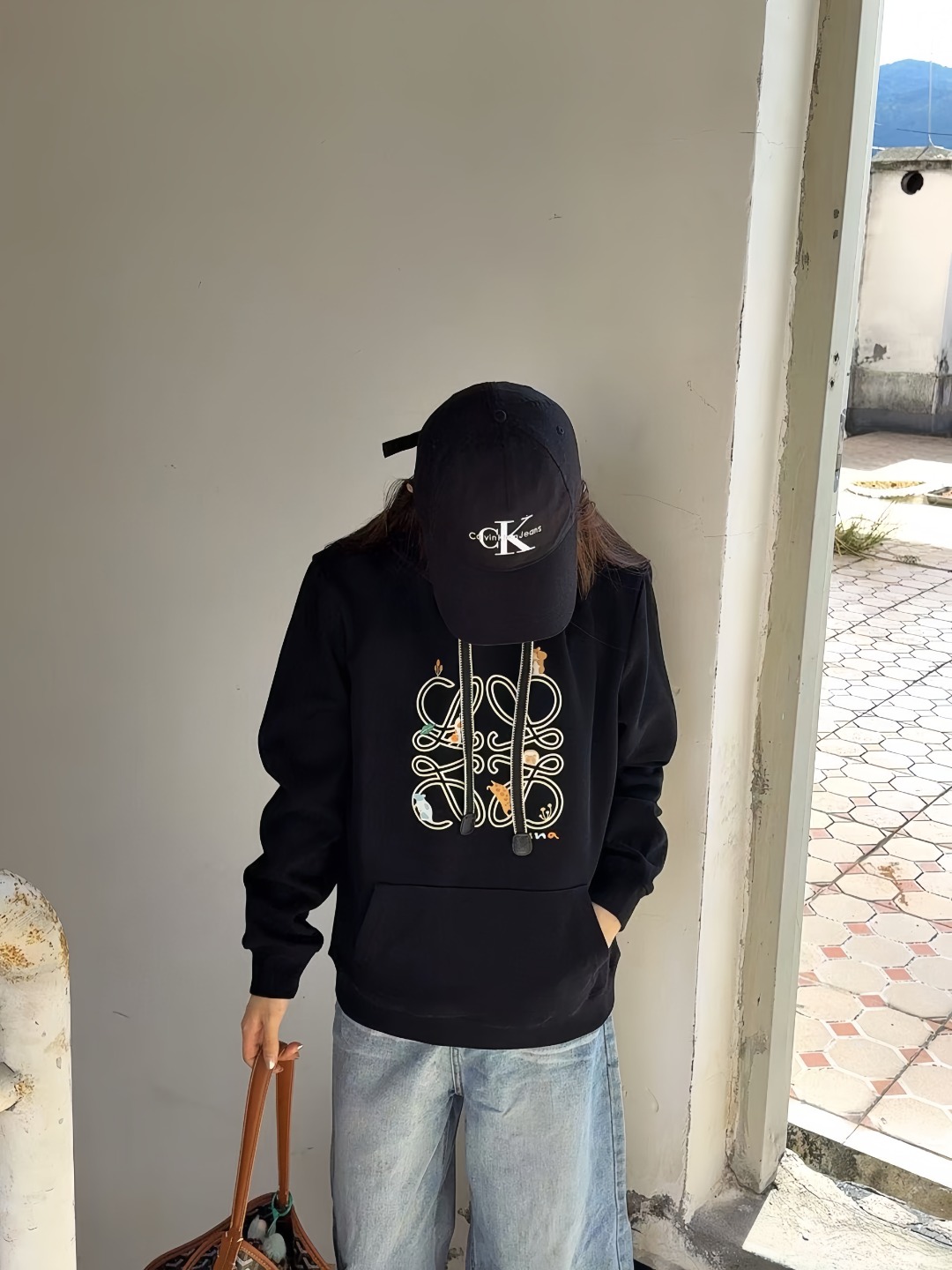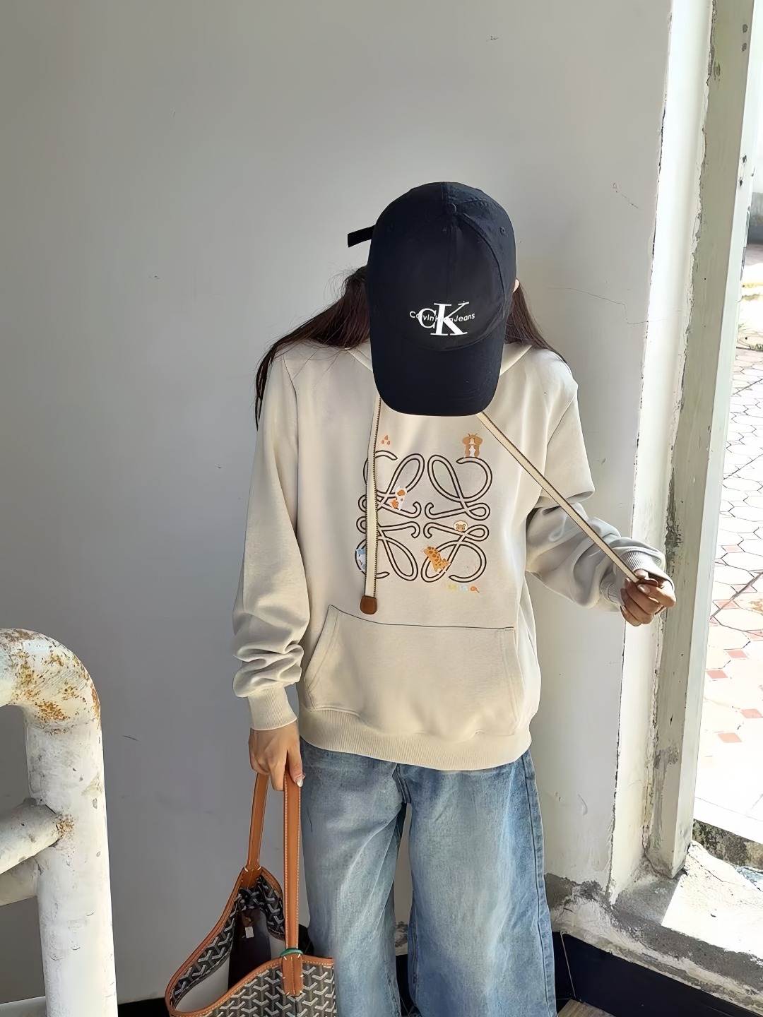 Buy L Guinea Pig Puzzle Logo Embroidered Hoodie (Beige/Black) Replica