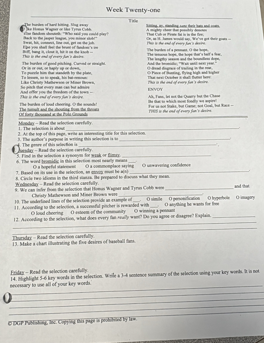 Solved: Week Twenty one Title The burden of hard hitting Slug away