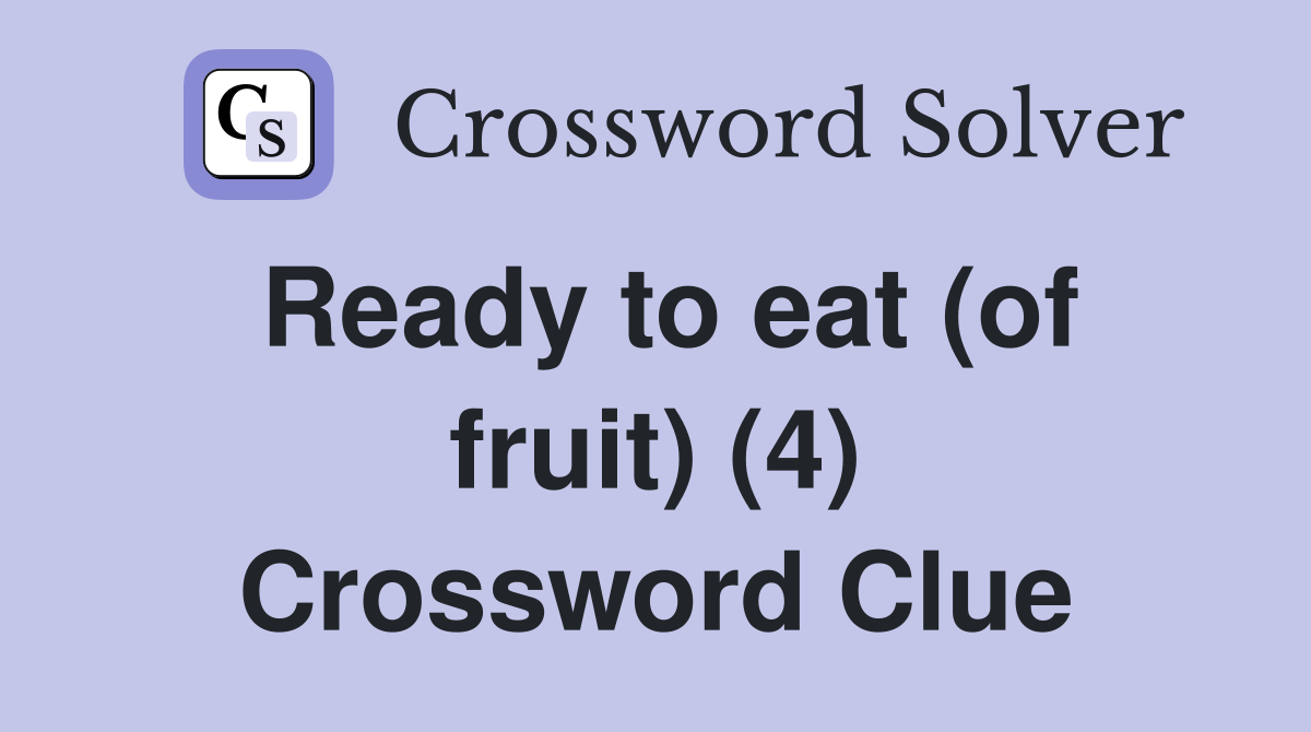 Ready to eat (of fruit) (4) Crossword Clue Answers Crossword Solver