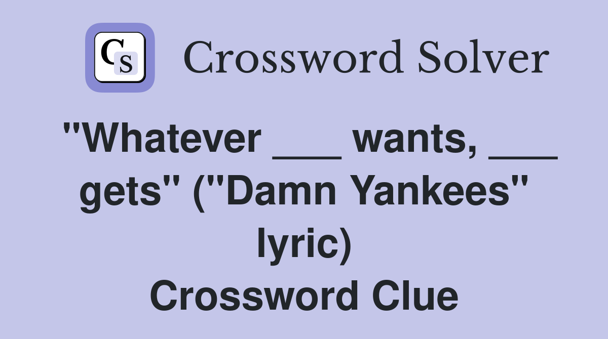 quot Whatever wants gets quot ( quot Damn Yankees quot lyric) Crossword Clue