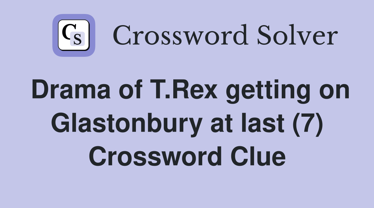Drama of T Rex getting on Glastonbury at last (7) Crossword Clue