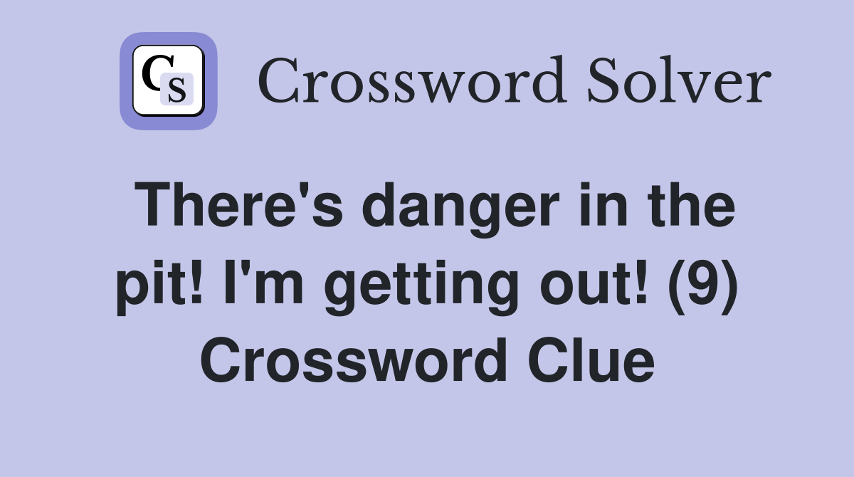 There #39 s danger in the pit I #39 m getting out (9) Crossword Clue