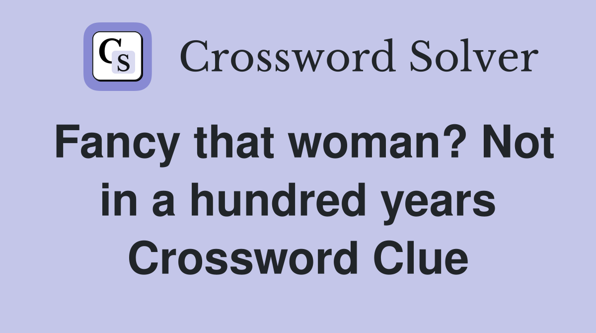 Fancy that woman? Not in a hundred years Crossword Clue Answers