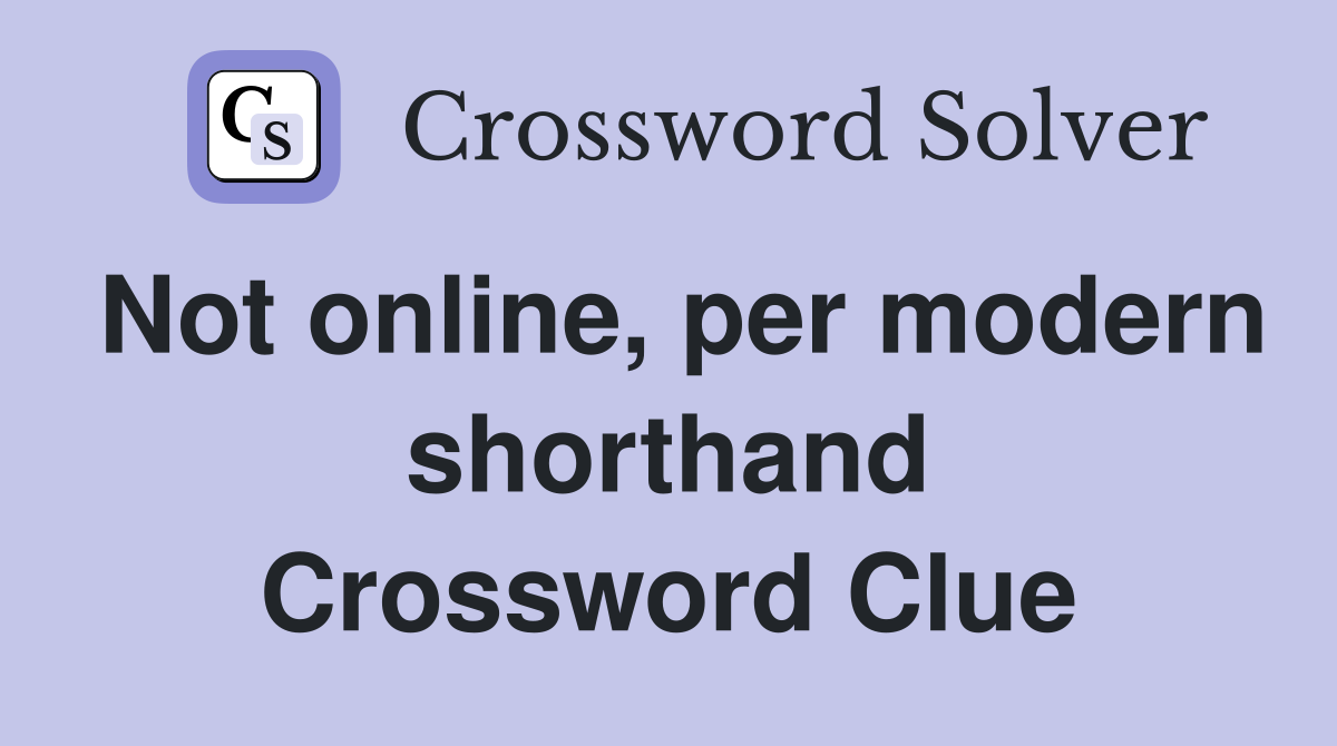 Not online per modern shorthand Crossword Clue Answers Crossword