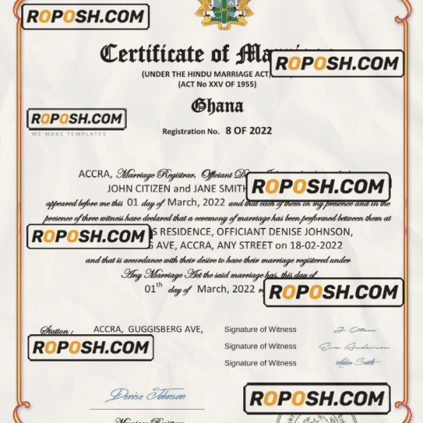Ghana marriage certificate PSD template fully editable Fake Docs Shop