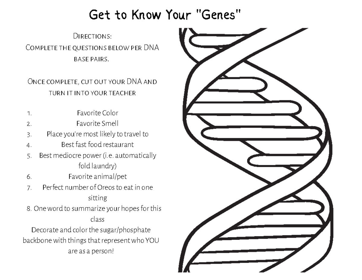 Copy of Get to Know Your Genes Get to Know Your quot Genes quot Directions