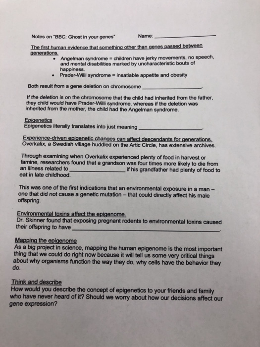 Solved Notes on quot BBC: Ghost in your genes Name: Angelman Chegg com
