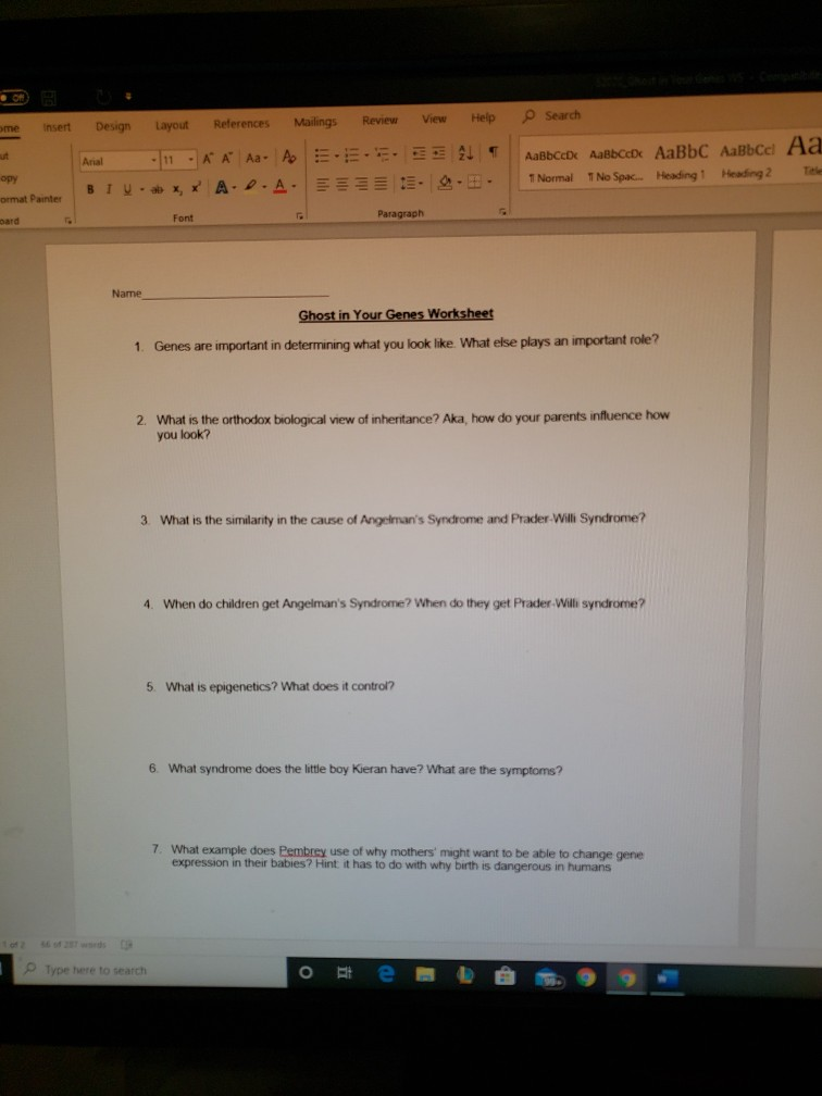 Worksheet Ghost in your genes Epigenomics docx Worksheet