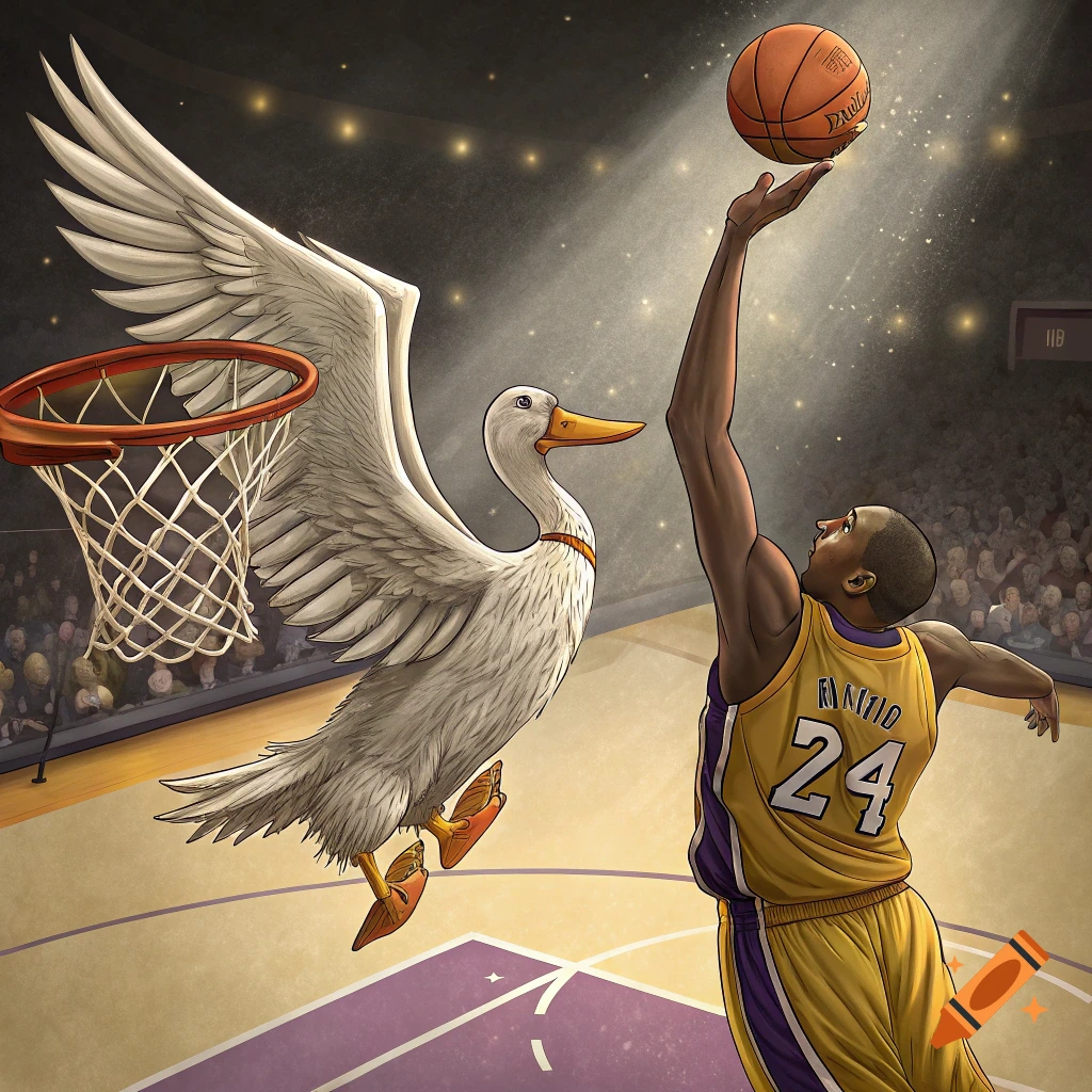 Illustration of a basketball player on his knees playing with a baby