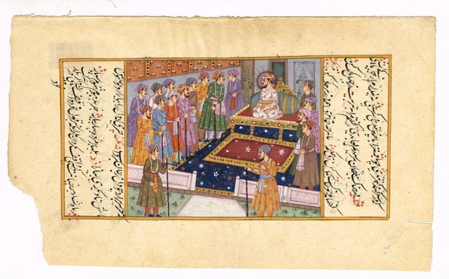 MUGHAL MINIATURE PAINTING Of Mughal Darbar Court Scene Art Old Indian