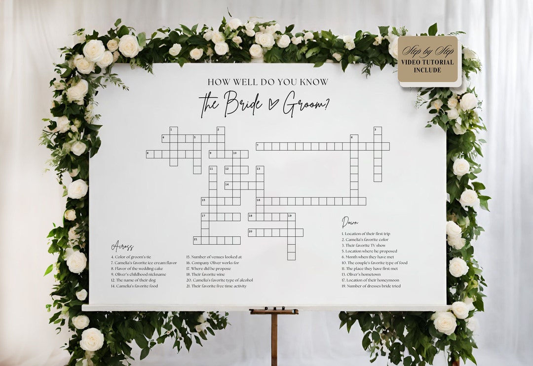 Wedding Crossword Sip and Solve Template Wedding Giant Puzzle Custom