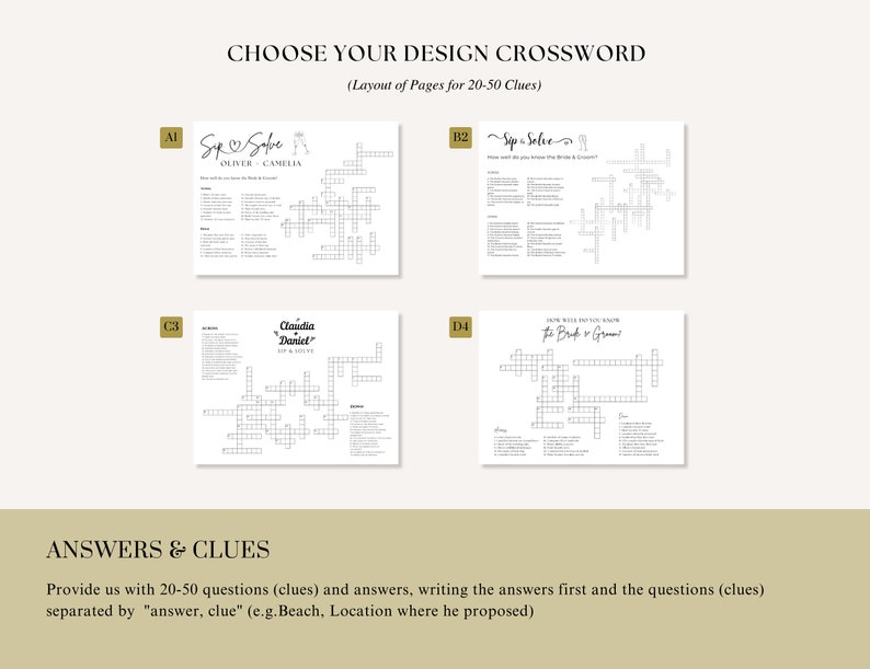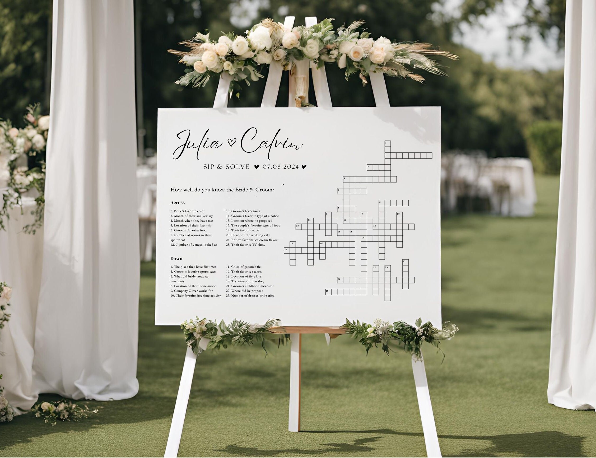 Custom Crossword Puzzle Wedding Template Sip and Solve Wedding