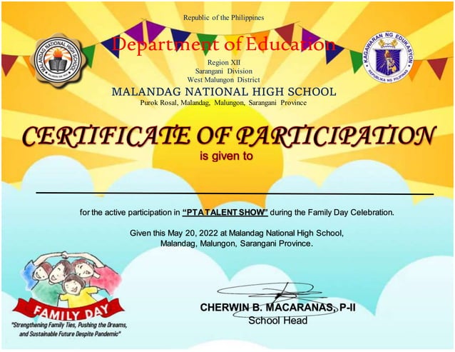 FAMILY DAY APPRECIATION CERTIFICATE UECFI District 12 Facebook