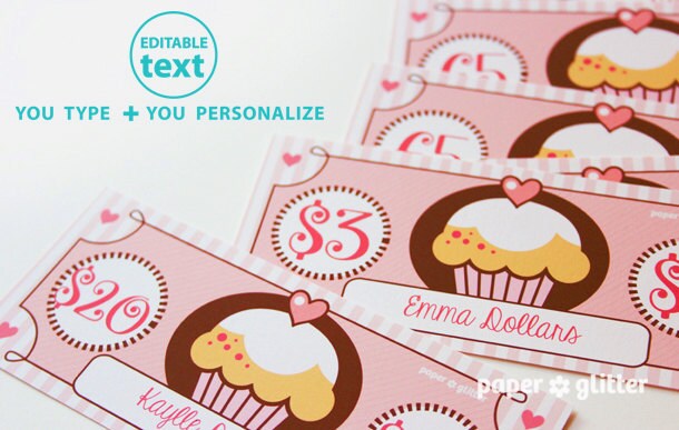 Cupcake Paper Toy Money or Gift Certificate Printables