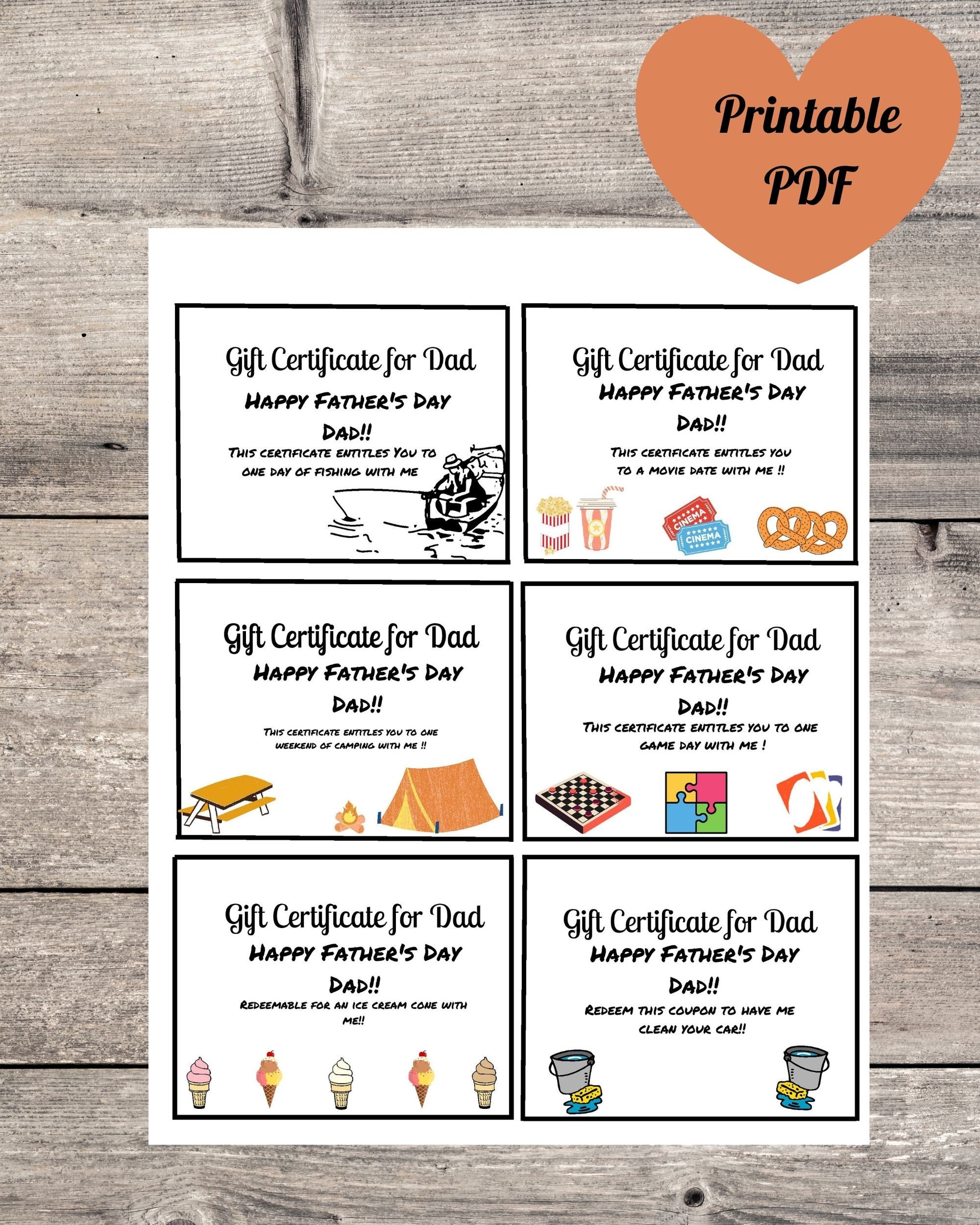 Father s Day Gift Certificates Printable