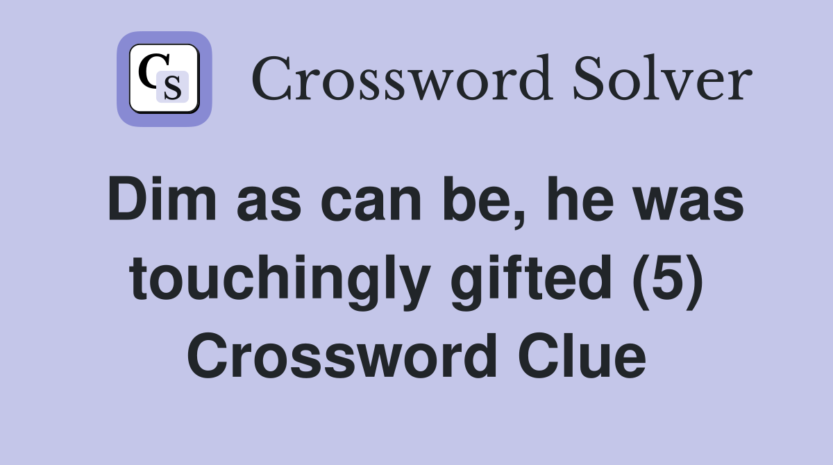 Dim as can be he was touchingly gifted (5) Crossword Clue Answers