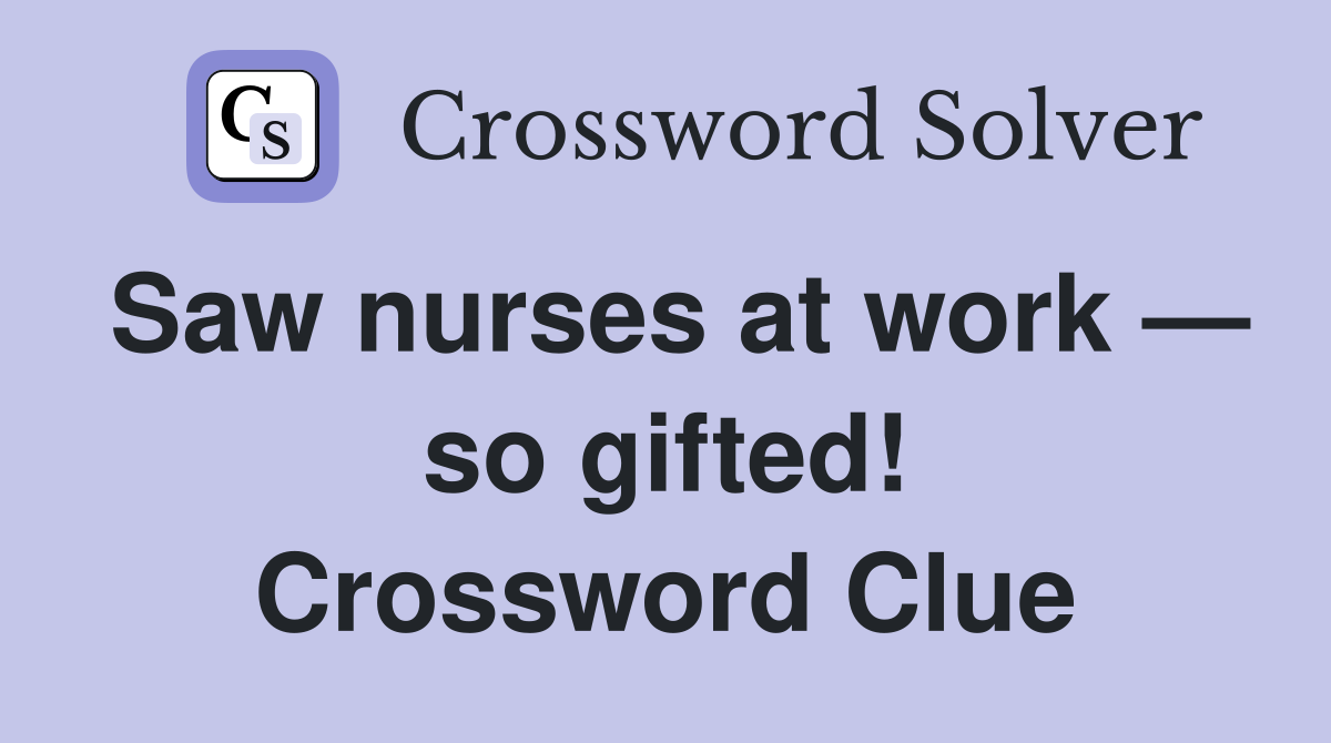 Saw nurses at work so gifted Crossword Clue Answers Crossword Solver