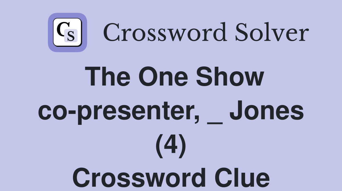 The One Show co presenter Jones (4) Crossword Clue Answers