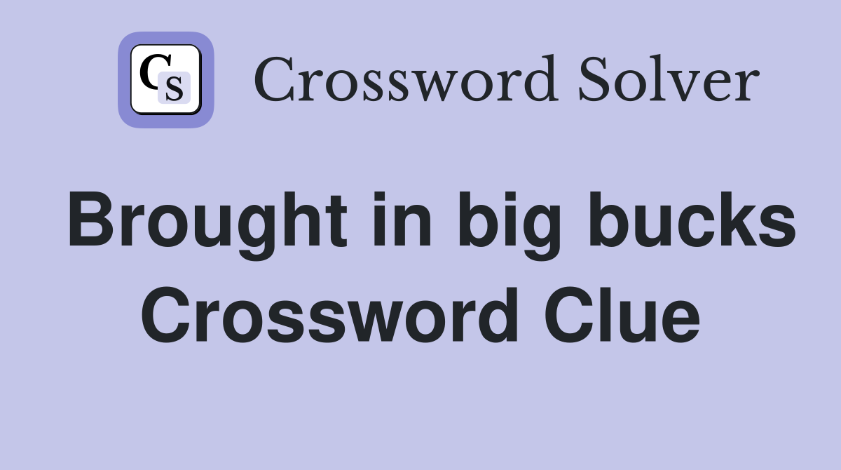 Brought in big bucks Crossword Clue Answers Crossword Solver