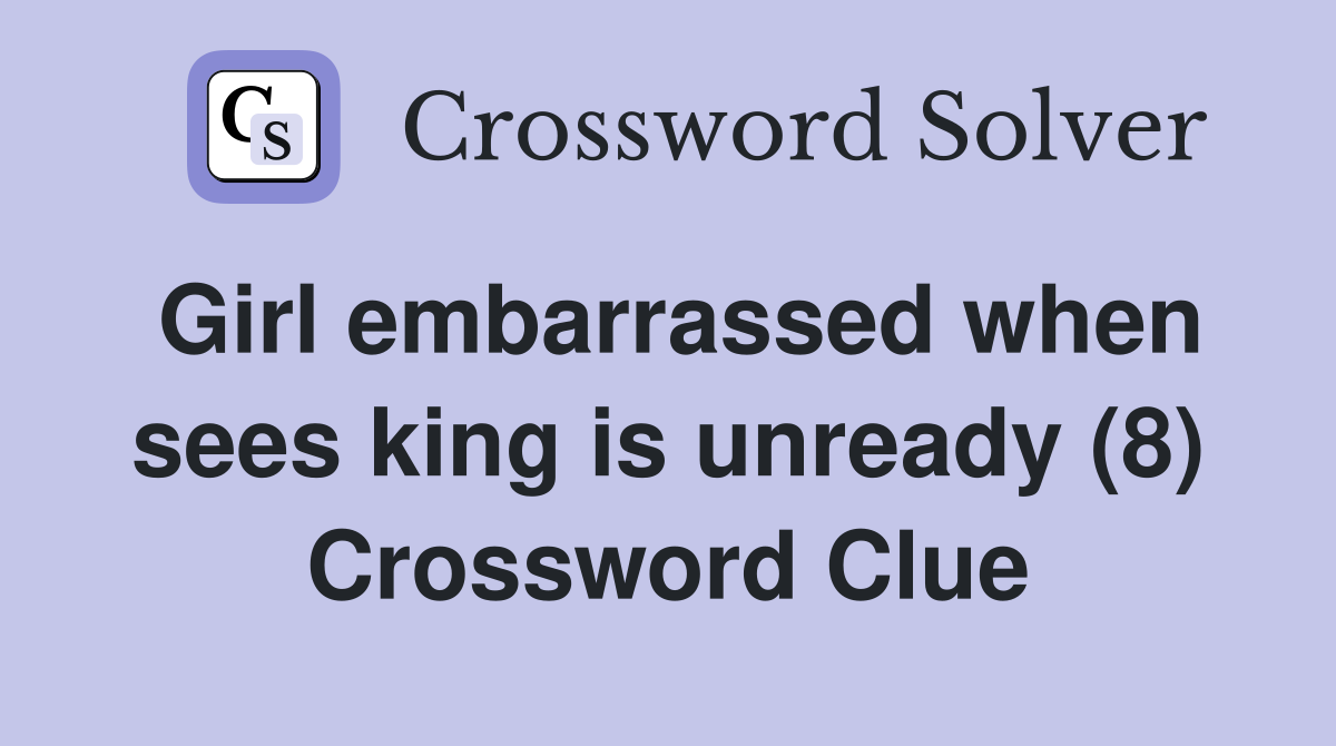 Girl embarrassed when sees king is unready (8) Crossword Clue Answers